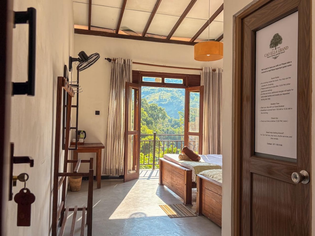 Spacious family room with two queen beds and breathtaking mountain views. Perfect for families or groups, Elite Ella offers a cozy, modern space to relax, unwind, and enjoy nature. Wake up to stunning scenery and make your stay unforgettable!