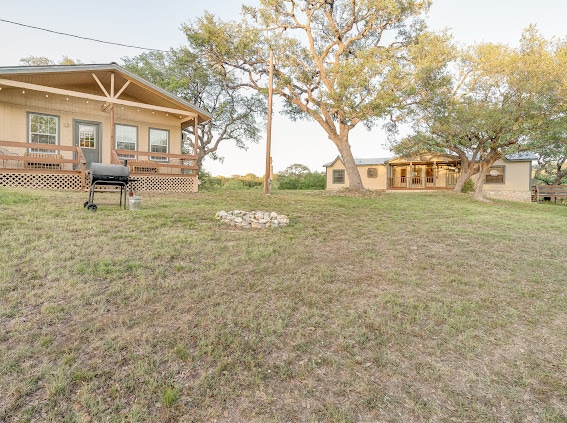Escape to the ranch at this clean & well equipped Frio Cielo Cabin. With a beautiful vista, amazing firepit area, and community access to the Dry Frio River you will immediately feel immersed in all of the best Texas nature has to offer. Loma Linda also provides an abundance of indoor entertainment when needed, including TV, Starlink high speed WiFi, board games, & books. Central Heat & A/C along with the large covered back porch will keep you comfortable year around.
