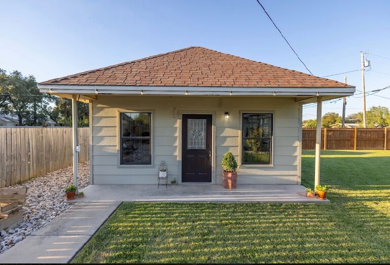 Cozy Sears-Roebuck 'kit' home from 1915 kept true to form with all original windows, doors and fixtures. This classic suite offers great natural light, a comfy queen bed, a dedicated office space, free wifi, a washer/dryer, and full kitchen. It is centrally located in old Uvalde with shopping and dining within walking distance. A couple of minutes walk to the town square, boutiques, and restaurants. 2 min drive to HEB or any other stores to get some supplies!