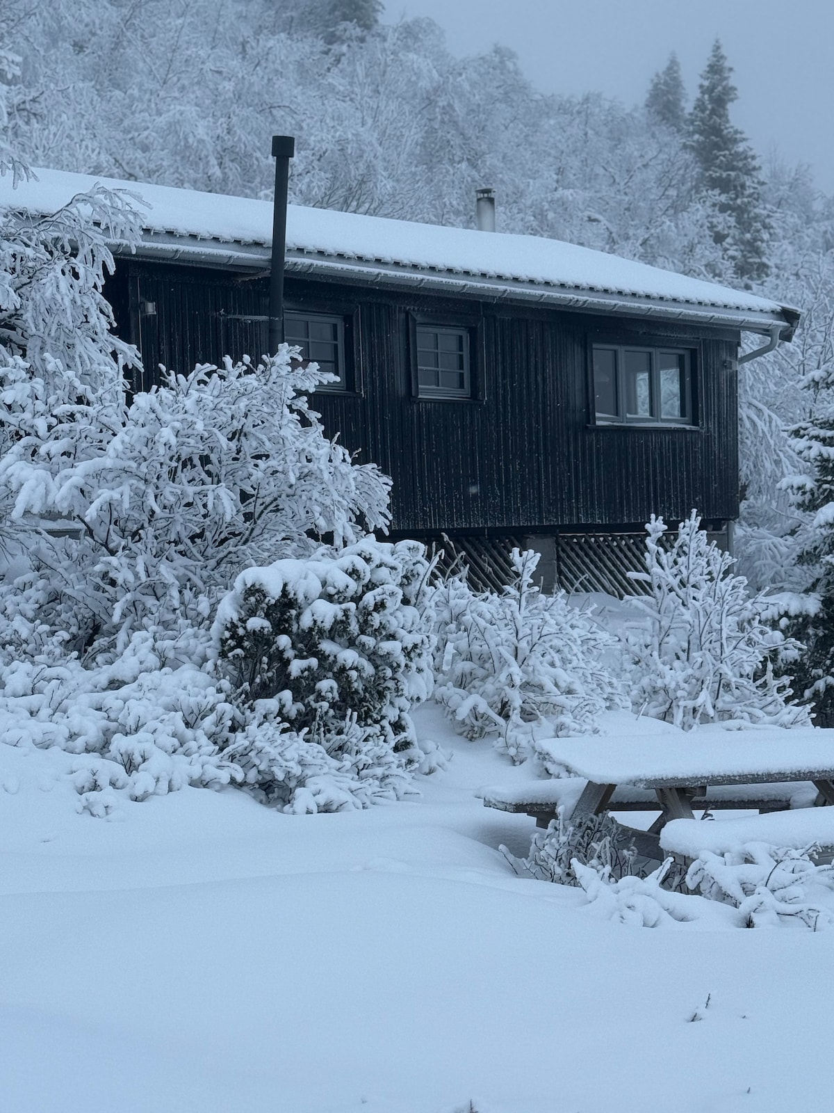 Hyggelig, håndlaftet tømmerhytte fra 2019, høy standard, med boblebad og alle fasiliteter. Parkering for flere biler og el-billader (type 2). Gang, bad/wc, stue med peisovn og kjøkken, 3 soverom. Bod/vaskerom, vaskemaskin og tørketrommel og wc. TV med Apple-TV/ Internett 100/100 via fiber/WiFi. Stor terrasse med hyggelig spiseplass til 10 personer, Weber kullgrill og boblebad. I tillegg er det en overbygget spiseplass med terrassevarmer ved inngangspartiet.