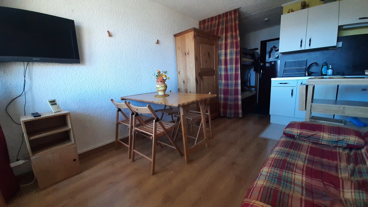 位于PraLoup 1600滑雪道脚下的舒适单间公寓