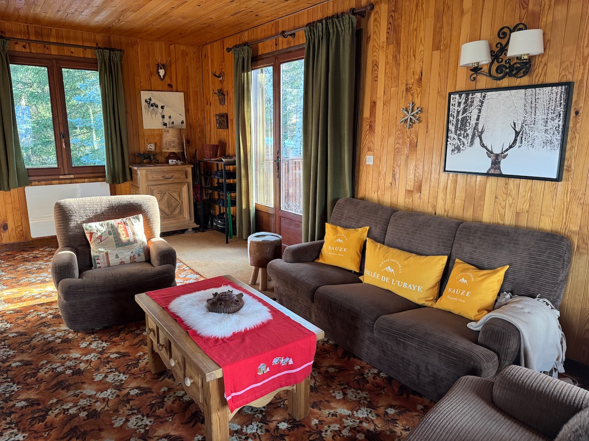 Bas de chalet neuf de plain-pied dans village de montagne. Dans l'appartement, vous découvrirez un poêle à granulés qui vous garantira des soirées chaleureuses au coin du feu. Avec sa décoration "montagne" mariant sapin et pierre, vous disposerez de tout le confort nécessaire. Les lits sont faits et draps de bain, linge de maison fournis. À 3km de la station, navettes gratuite circulent (aller/retour) toute la journée en hiver. Vous profiterez du calme et de la nature.