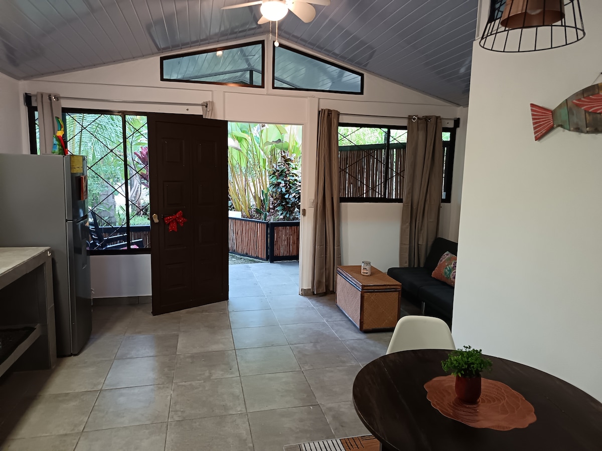 Our guest cottage is directly on a secluded beach, just south of Dominical. A fully equipped kitchen, with 1 bedroom, and living room with a double sleeper/sofa. The sleep/sofa is OK for children but would not work for 2 adults. A covered balcony allows awesome views of the ocean, and wild life, as well as outside dining. A/C, Wi-Fi, cable TV and a list of amenities. This cottage shares the property with our main beach front home. Rent both and enjoy your private beach front resort.