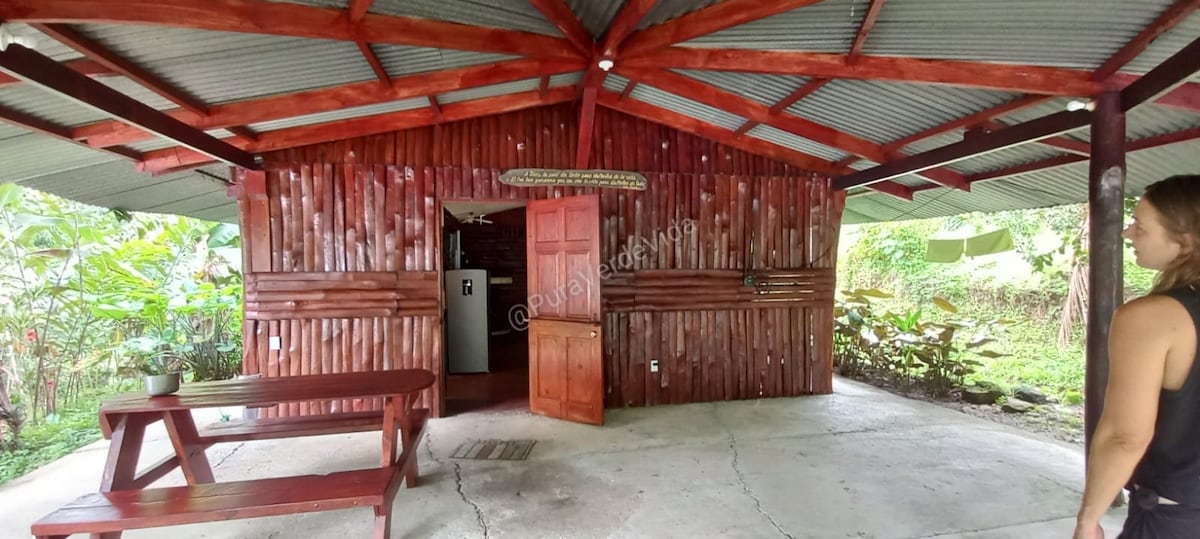 Wake up to the chirping of birds and greet the sunset with the sound of monkeys and other typical rainforest animals in this open-concept, handcrafted cabin made of native wood, 300 m from one of the most beautiful beaches in the South Pacific, Playa Chamán. The cabin has two floors, downstairs an open space with a living -dining - kitchen, a shower surrounded by plants and a small terrace. Upstairs, a spacious bedroom with mosquito netting and a balcony with an incredible view and hammock.