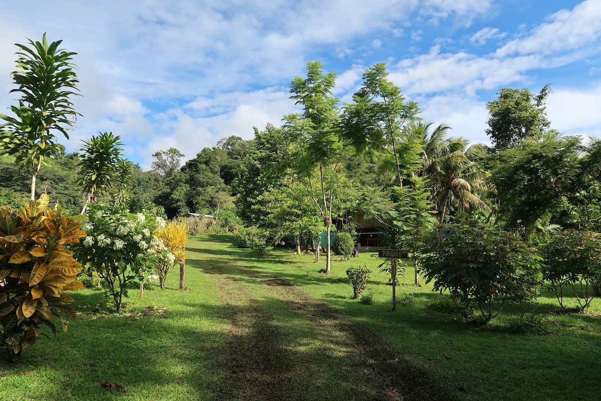 Proche des meilleurs restaurants de la zone, du parc Marino Ballena de Uvita ainsi que de très belles cascades, cet endroit unique possède un accès facile proche de la route tout en étant au coeur de la jungle. Entouré d'animaux, Villas en el bosque est un petit coin de paradis qui permet de se ressourcer et de profiter pleinement de ce que le Costa Rica offre de meilleur Le petit déjeuner au milieu de la jungle est inclus dans le prix de la chambre :-)