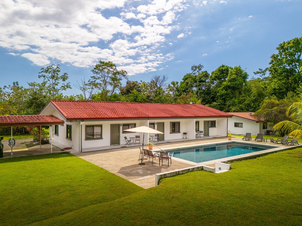 Your family will be close to everything when you stay at this centrally-locate. Stay in the heart of Bahía Ballena at Casa La niña—one of three private villas just minutes from Marino Ballena National Park and beaches. This fully independent 3BR/2BA home features its own private pool, BBQ & outdoor dining area, outdoor shower, full kitchen, private yard, and gated parking. Perfect for families or groups wanting both privacy and proximity to everything. FAST Wi-Fi. No 4x4 needed.