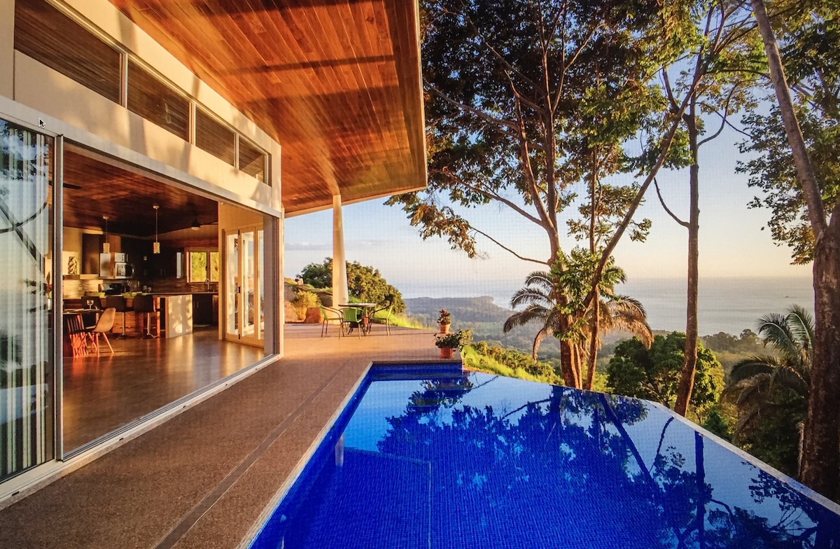2bd 2ba modern home - on the mountain, in a rain forest overlooking the ocean! Located high above Uvita, you'll feel disconnected from it all, yet only 12min from downtown & FAST wifi! The 180° views will stop you in your tracks. And of course there’s a pool to cool off in while enjoying a timeless vacation on a 66 acre oasis in the clouds. So whether it be a coffee or tea, a glass of wine, a cold drink it will pair perfectly w/ a Costa Rican sunset. 25$ per extra guest per night