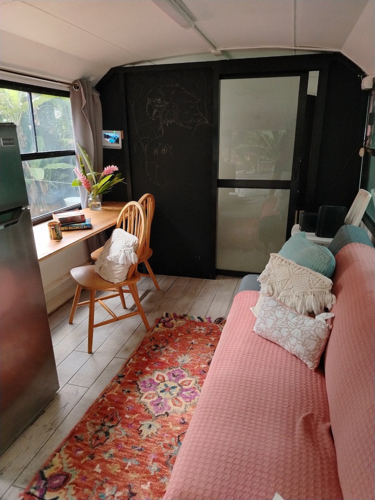 Nuestra casa autobús ha sido cuidadosamente modificada y está equipada con todos los servicios que necesitarás para una estancia cómoda y placentera. Excelente Ubicación en el centro de Playa Dominical con su ambiente de surfista y divertida vida nocturna , a tan solo 3 minutos caminando de las olas de surf, a 20 minutos del Parque Nacional Manuel Antonio, 15 minutos del Parque Nacional Marino Ballena y a tan sólo 15 minutos del aeropuerto de Quepos.