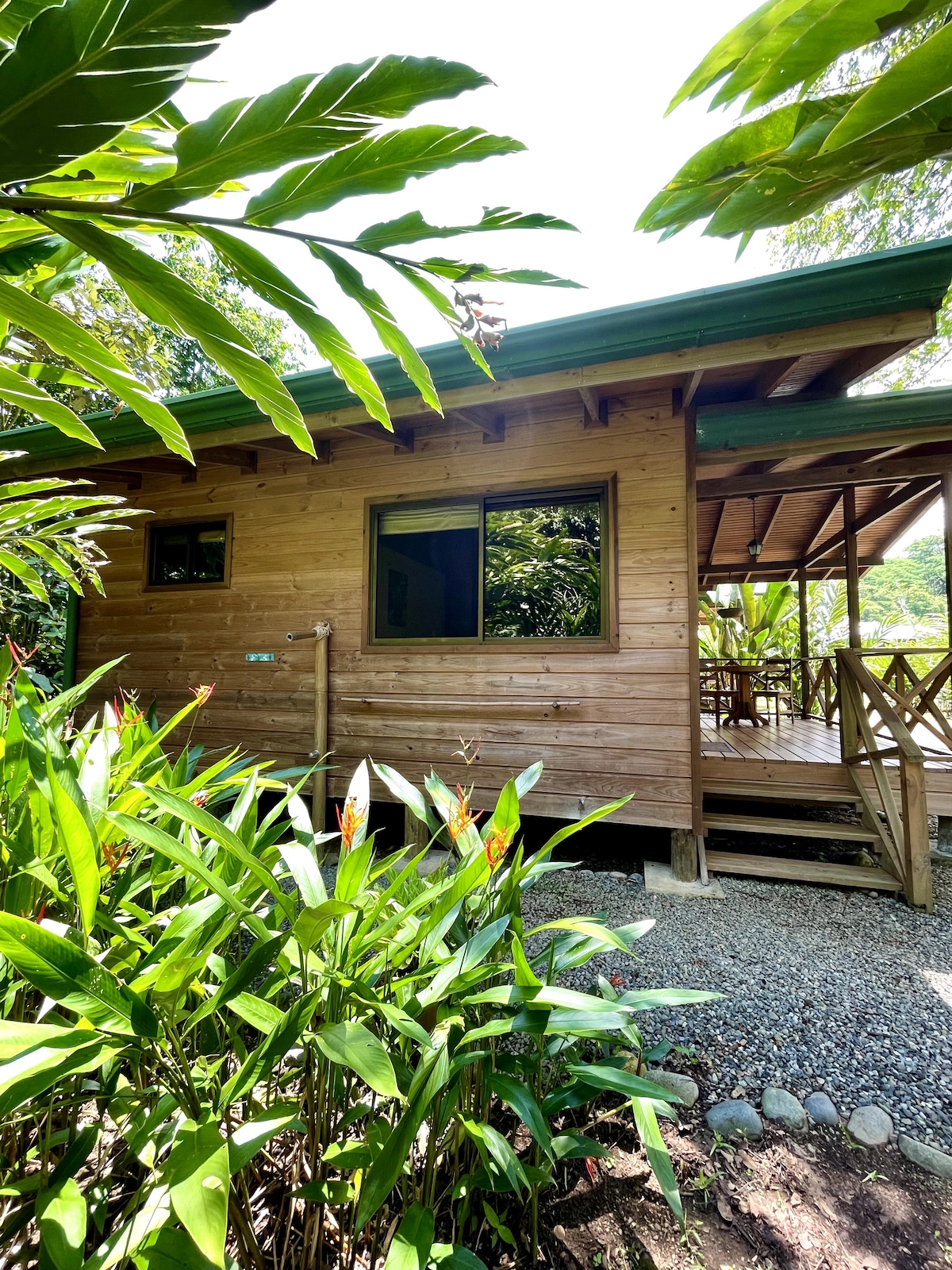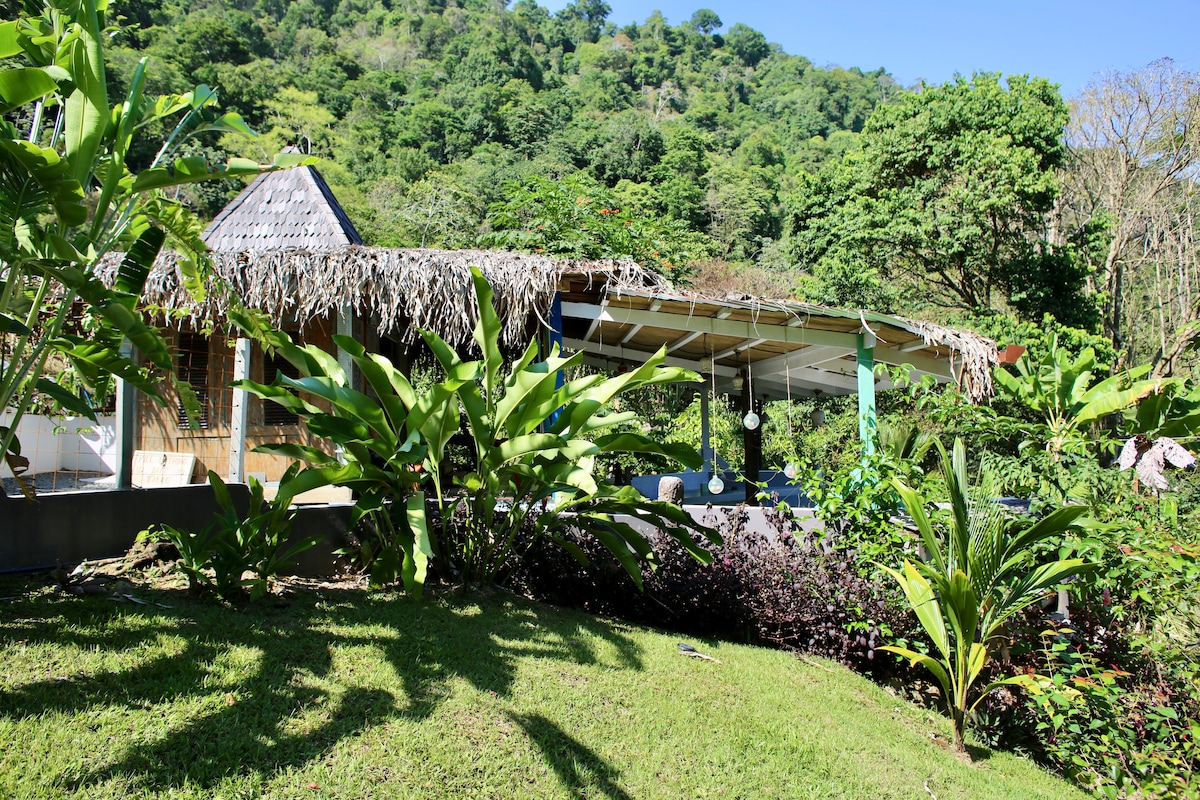 Bienvenidos a Casa Opa! Studio-style A-frame on large, fenced lot surrounded by nature, on a dead end road in a small, but growing neighborhood with friendly neighbors in Bahia Ballena. Relax in the hammock outside and maybe catch the Scarlet Macaws playing in the trees overhead! A 12-15min walk (or a quick drive) to the beach & amazing Marino Ballena National Park. Only 5-15min walk to restaurants, cafes, yoga studios & mini supermarkets. Perfect for a couple, or solo travelers.