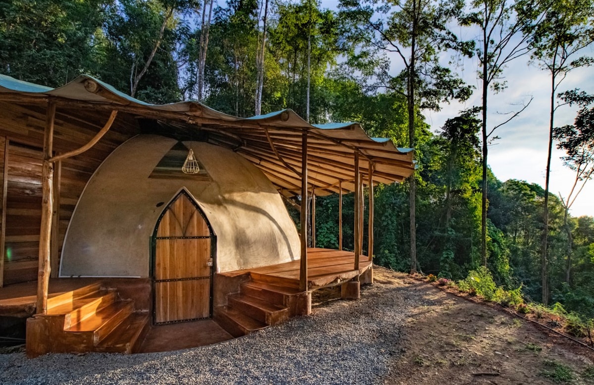 有机农场上的舒适丛林小屋,景色迷人
