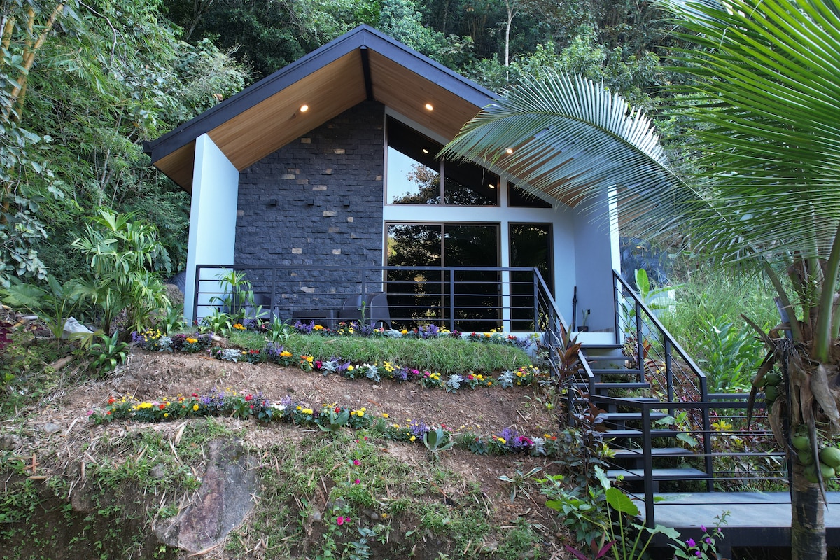2bd 2ba modern home - on the mountain, in a rain forest overlooking the ocean! Located high above Uvita, you'll feel disconnected from it all, yet only 12min from downtown & FAST wifi! The 180° views will stop you in your tracks. And of course there’s a pool to cool off in while enjoying a timeless vacation on a 66 acre oasis in the clouds. So whether it be a coffee or tea, a glass of wine, a cold drink it will pair perfectly w/ a Costa Rican sunset. 25$ per extra guest per night