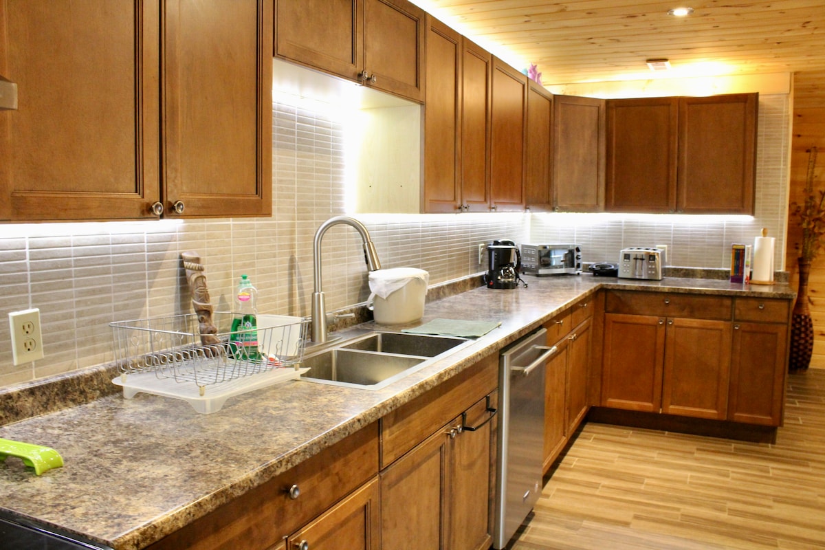 Step into this perfect nature getaway in the heart of Mount Albert. This 700 sq-ft open concept walk-out basement apartment is loaded with a state of the art kitchen, a king bed, 65 inch TV, gas fireplace, a 1/3 acre backyard including BBQ & gazebo. The space was recently renovated to give a cozy cabin feel. It is filled with beautiful greenery both inside and out, giving life everywhere you step. Wooden art pieces hand carved by the owner himself fill the room with creativity.