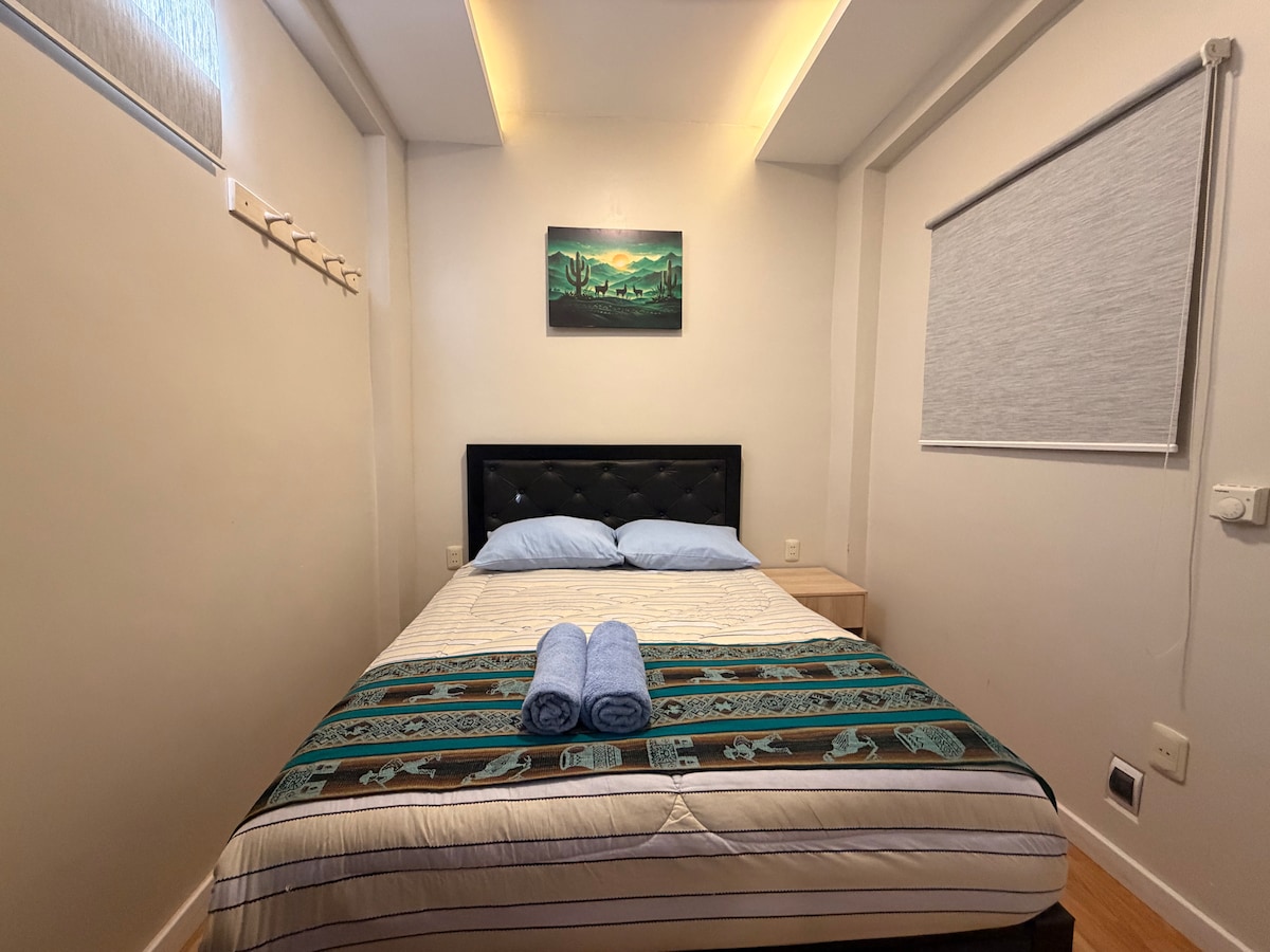 Cuarto privado y Alfombrado! Tendrás a tu disposición una habitación alfombrada, un baño privado equipado con toallas, jabón de manos, secadora de cabello y la vajilla necesaria para tomar algo caliente 🍵 El cuarto cuenta con una cama Doble para tu buen Descanso🛏️ Habitación cerca al centro, pero lo suficientemente alejada para evitar ruidos de trafico y fiestas, a 10 minutos del las plazas turísticas y cerca de Agencias de tours hacia, "El Salar de Uyuni" Vecindario Tranquilo y Seguro :)