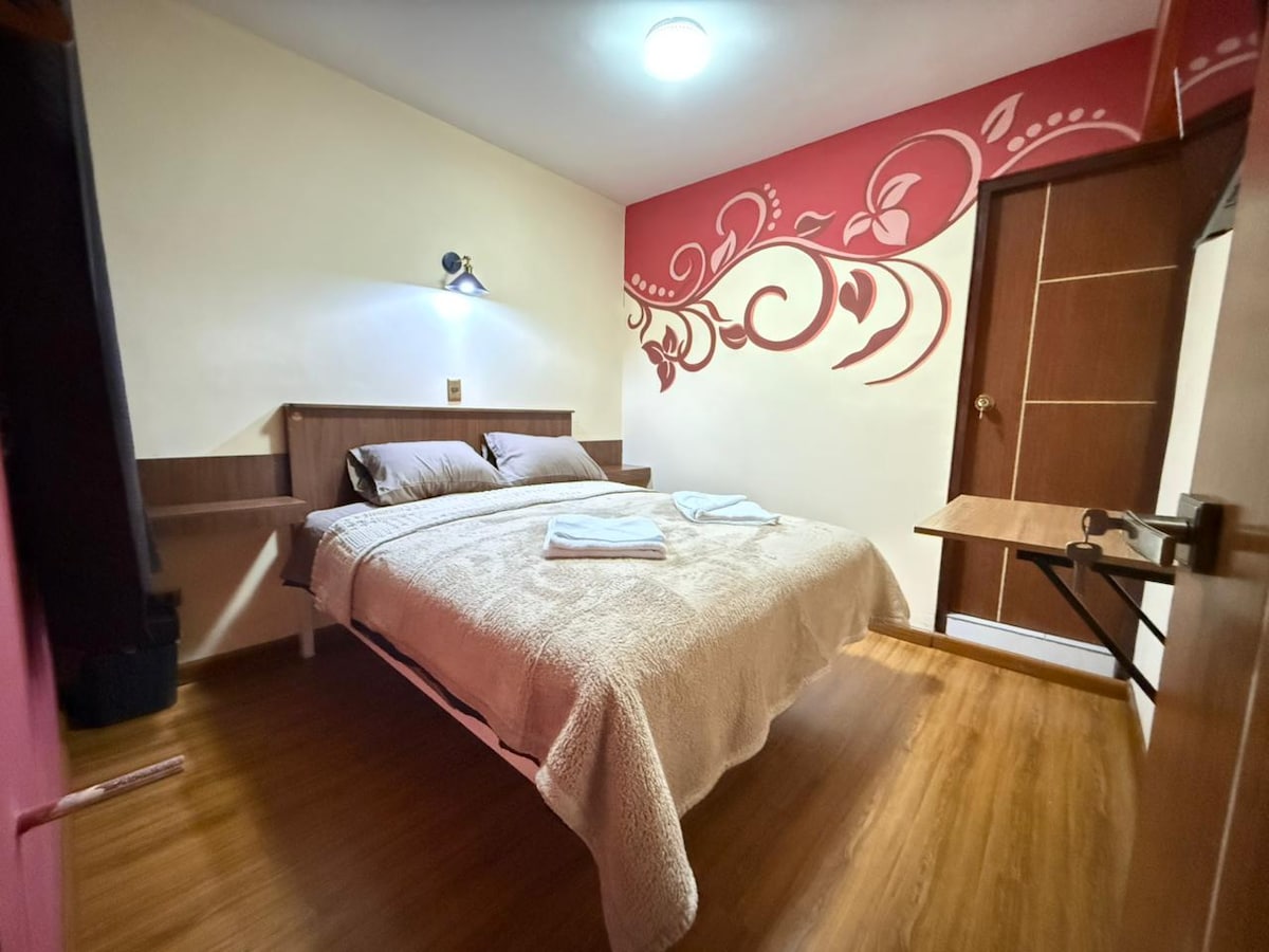 el hostal es familiar con diseños de quinua tiene un mirador para ver el atardecer se da un desayuno personal gratis tenemos una tienda de artesanía a bajo costo y estamos ubicados a dos cuadras de la terminal de buses tenemos habitaciones individuales, dobles triples y cuatruples y familiar para 5 personas con baño compartido y tenemos matrimonial y dobles también familiar para tres personas con baño privad