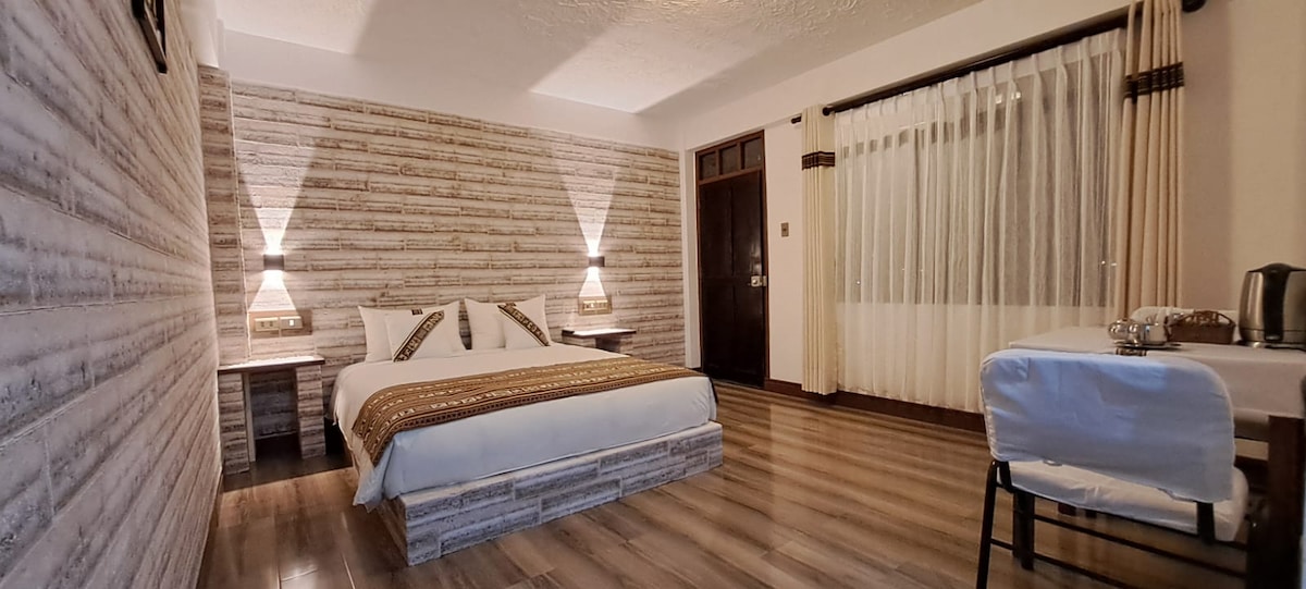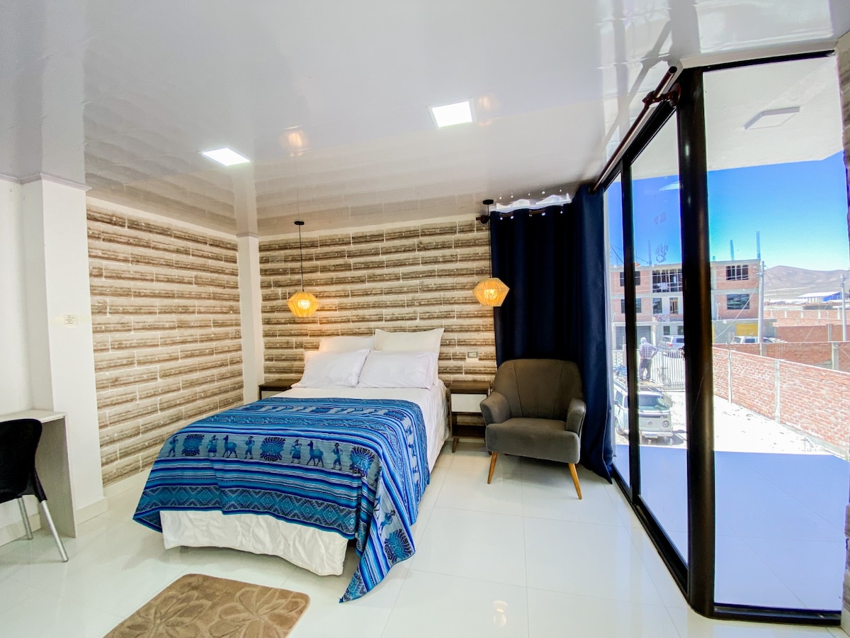 ¡Descansa en una experiencia única en Uyuni! Nuestra habitación de sal combina diseño elegante y calidez andina, con paredes y detalles auténticos que crean un ambiente acogedor y especial. Cuenta con cama matrimonial, baño privado completo, excelente iluminación y espacios cómodos para relajarte después del tour al Salar. Vive algo diferente, duerme en sal y despierta renovado.