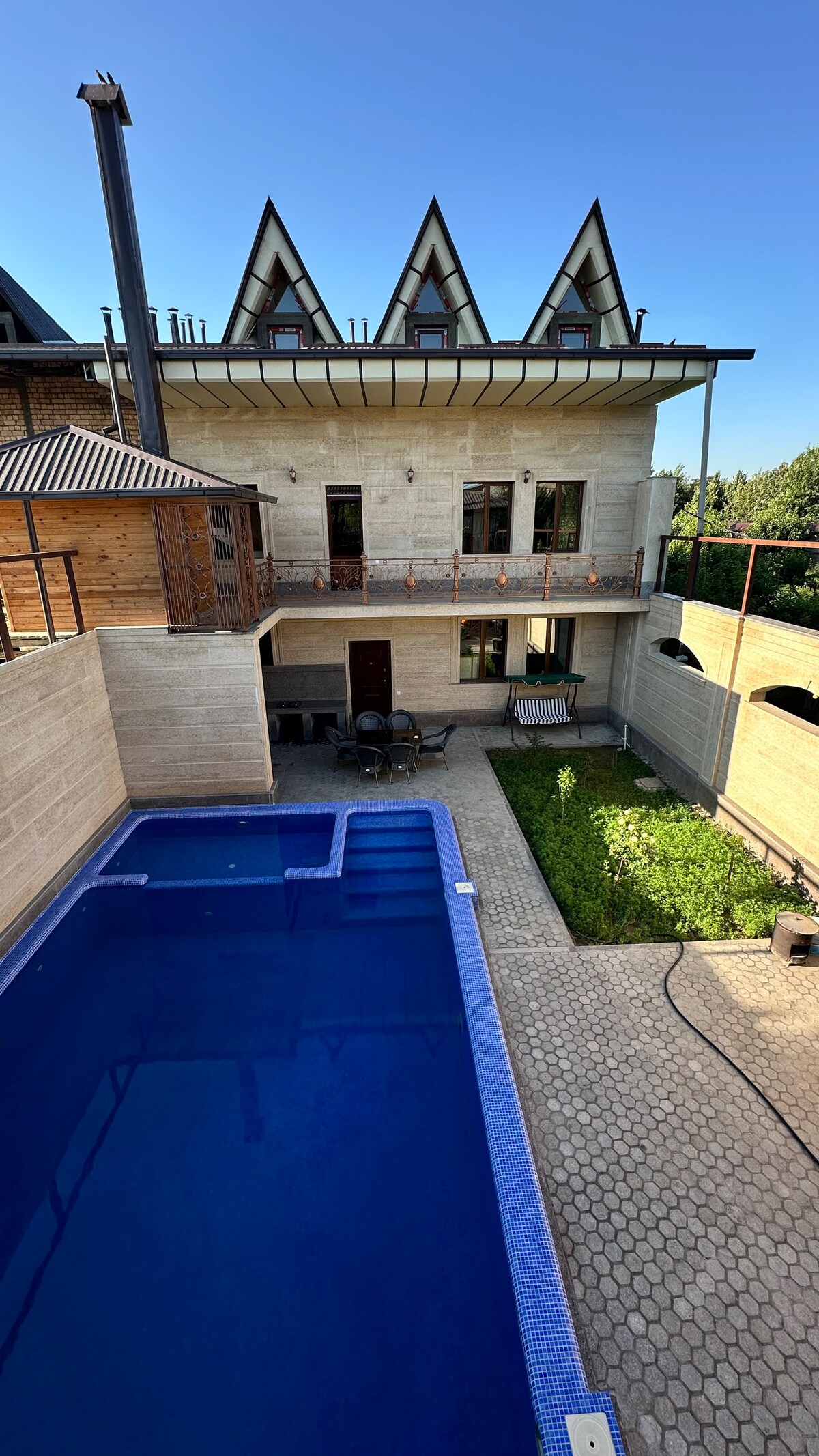 Спокойное жилье для расслабленного семейного отдыха. Есть бассейн, сауна, хаммам. Бильярд, телевидение летняя и зимняя кухня, бесплатная парковка.