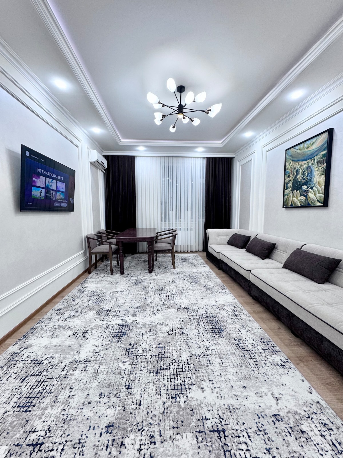 Welcome to a stylish and cozy apartment in the prestigious Parkwood residential complex with its own green park, located in the heart of Tashkent. A spacious terrace for morning coffee and relaxation. Heated floors, air conditioning, Wi-Fi, 2 TVs, dishwasher, and washing machine—everything you need for a comfortable stay. All necessary amenities are within walking distance. The apartment is ideal for both business trips and vacations. Book your corner of nature in the center of the capital!