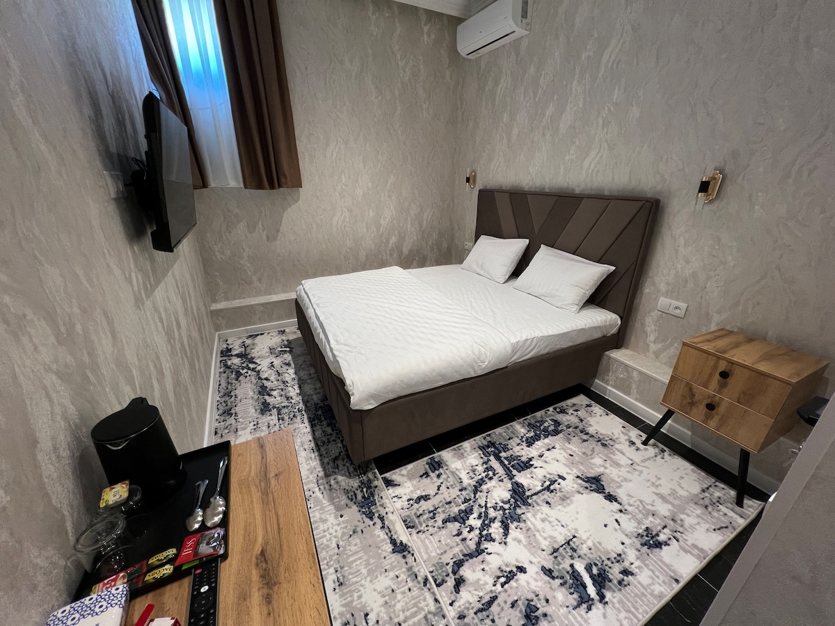 Hello dear guests! Our hotel is located in the city center. We have 5 rooms, double, triple and quadruple rooms, so each room has a bathroom, air conditioning, TV, high-speed Internet. We also have an outdoor swimming pool and parking for private vehicles. We will be glad to see you!