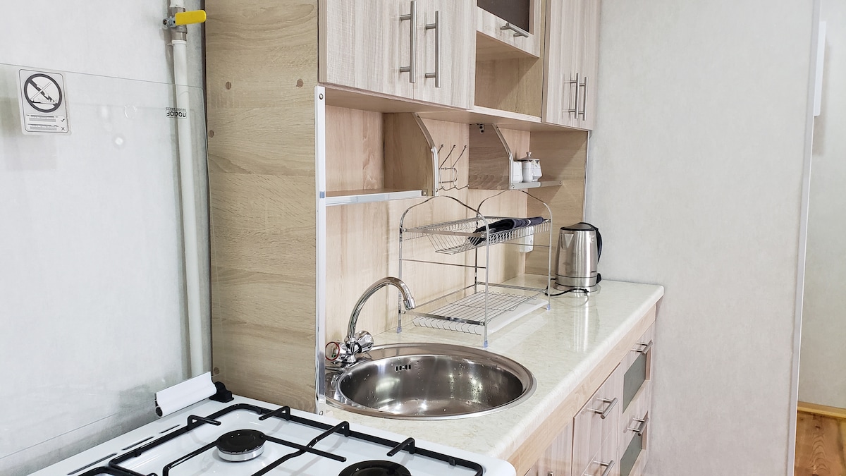 A great little studio. Affordable comfort at a prime location. Literally 30 meters from a metro and a bus stop. Fast WiFi and IPTV with 2000 channels in various languages. Free registration for our guests. The area is well developed with markets, supermarkets, fast food, restaurants - all at a walking distance. All the amenities are there for you to stay comfortable, and you'll love the triple-glass windows that are soundproof.