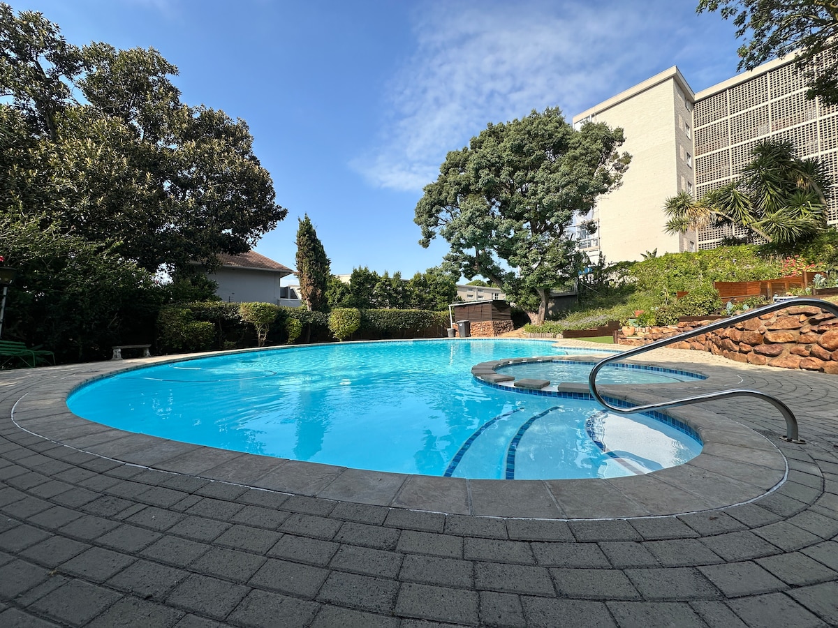 Enjoy a stylish experience at this iconic and centrally-located apartment building. Nestled on the main road of a tree lined suburb, 10 minute walk from the V&A Waterfront, Two Oceans Aquarium and Green Point Stadium. Restaurants, grocery store, deli, hairdresser, barber, laundromat all in the same street. Prime location! We have loadshedding backup. *Please note: Construction is taking place across the road, with noise related to this from morning to 5pm, Monday to Saturday.