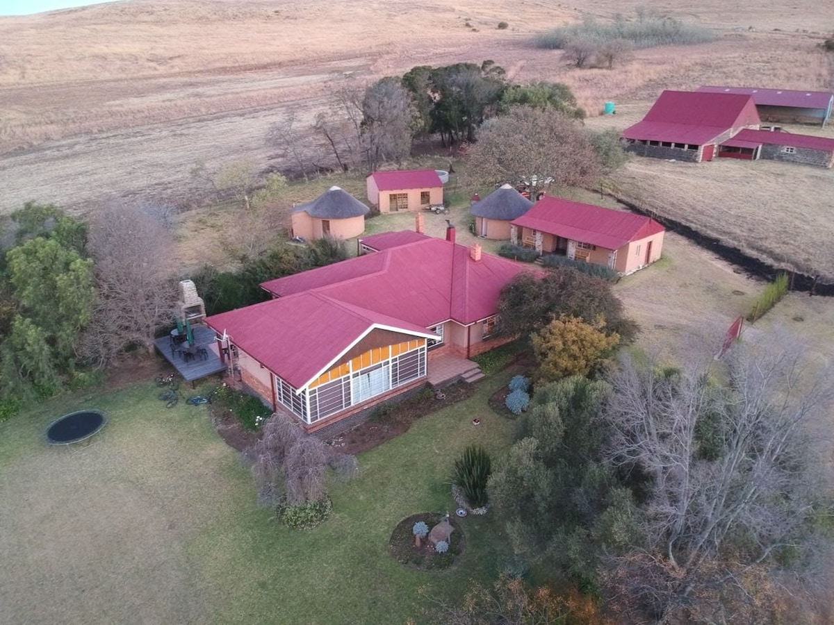 Midway between Johannesburg and Durban. Original stone built mountain cottage with a thatch roof overlooking the Drankensberg. Magnificent views and a champagne climate. The house is situated in a Conservancy protecting the unique fauna and flora of the African Montane biosome.