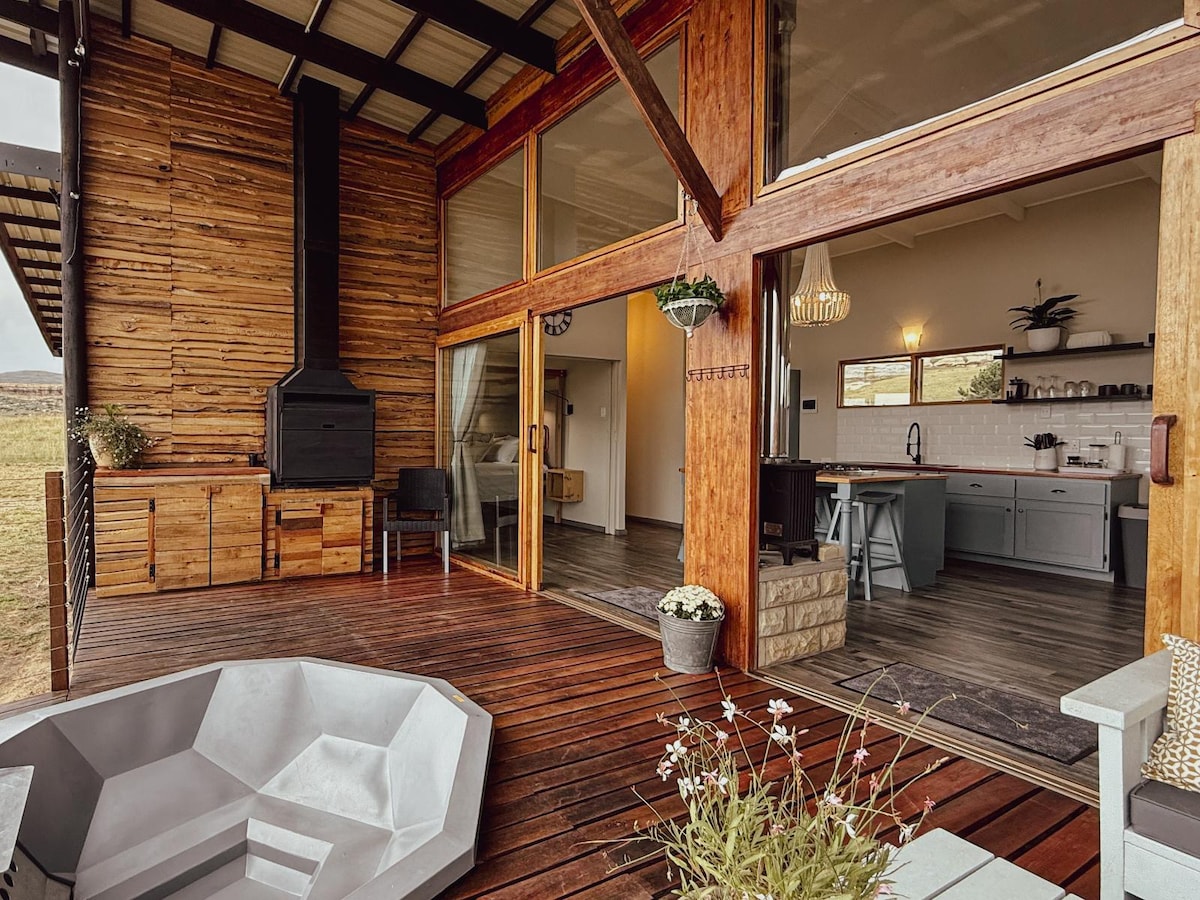 You'll love this unique and romantic escape. glamping at its best. everything you need for self catering. The tent has its own entrance and your own private wood fired hot tub for those chilly evenings or cooldown cocktail pool for hot days. We have a movie screen at the foot of your bed, a projector to watch some classics, good fibre to stream your fav apps. microwave for popcorn, electric blankets and a gas heater. a braai and potjie pot, outside dining area and a hot shower.