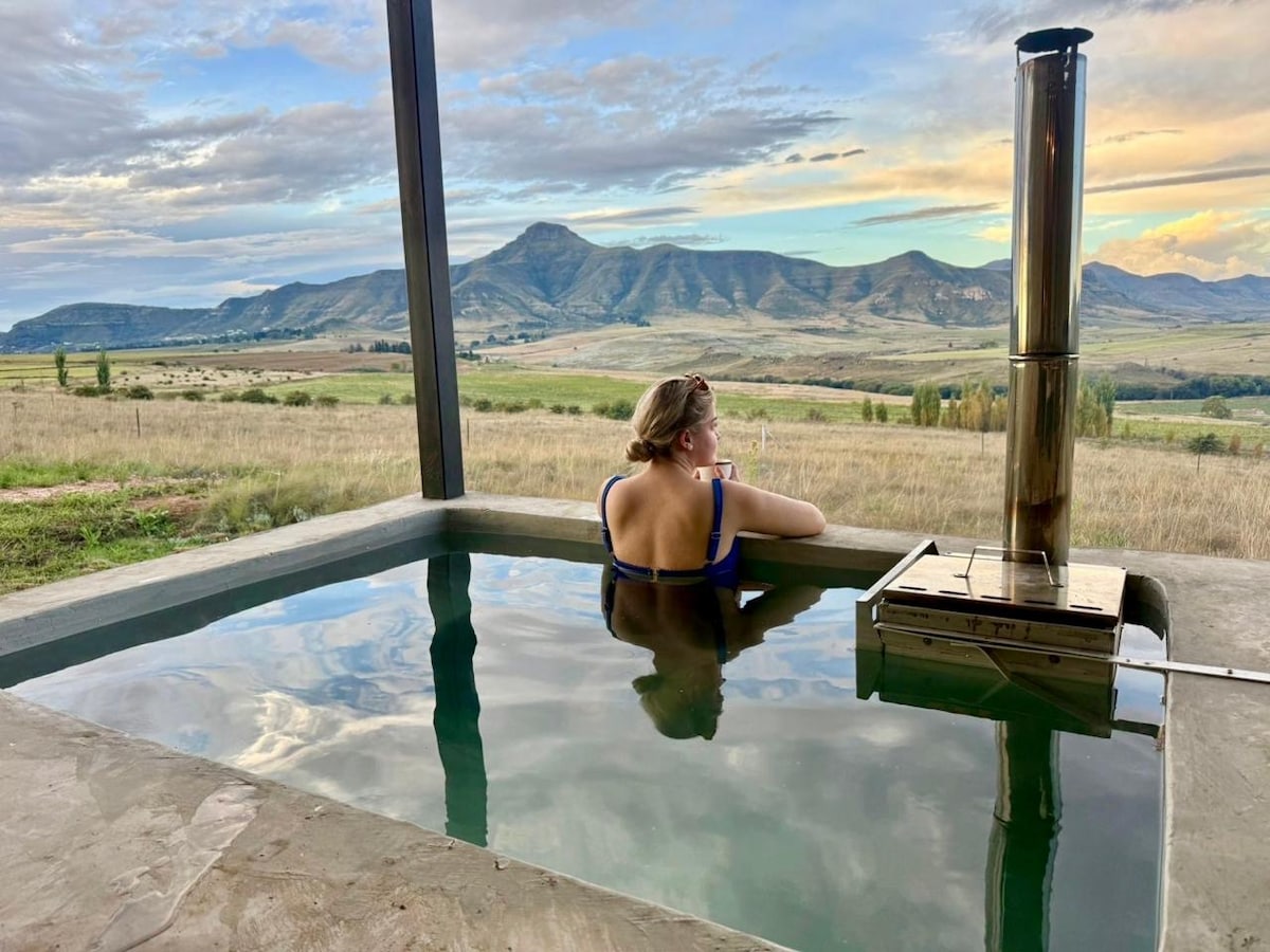 You'll love this unique and romantic escape. glamping at its best. everything you need for self catering. The tent has its own entrance and your own private wood fired hot tub for those chilly evenings or cooldown cocktail pool for hot days. We have a movie screen at the foot of your bed, a projector to watch some classics, good fibre to stream your fav apps. microwave for popcorn, electric blankets and a gas heater. a braai and potjie pot, outside dining area and a hot shower.