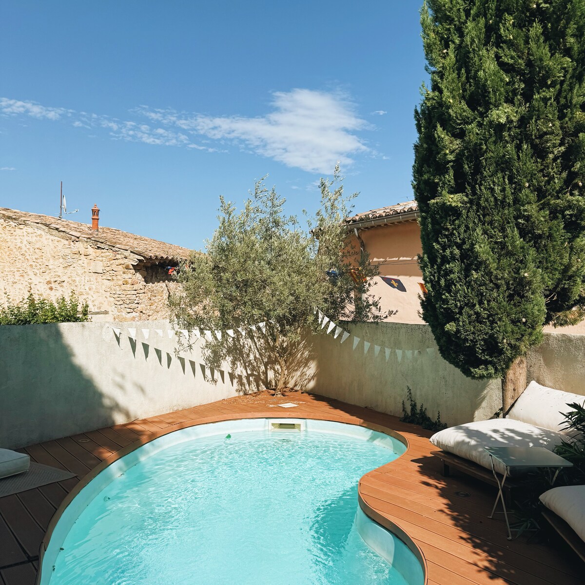 Le gîte "Abricot Romarin" est un logement de 30m2 avec une capacité d'accueil de 4 personnes. Il a été décoré dans un style ethnique. Il comporte une salle à manger/cuisine, une chambre avec lit double fermée par des rideaux, une salle d'eau avec wc et douche et une mezzanine avec deux lits simples. Du mobilier de jardin et transats sont à votre dispoisition ainsi qu'un barbecue à gaz. La piscine fait 9*4m et est à partager avec les autres gîtes de la propriété.