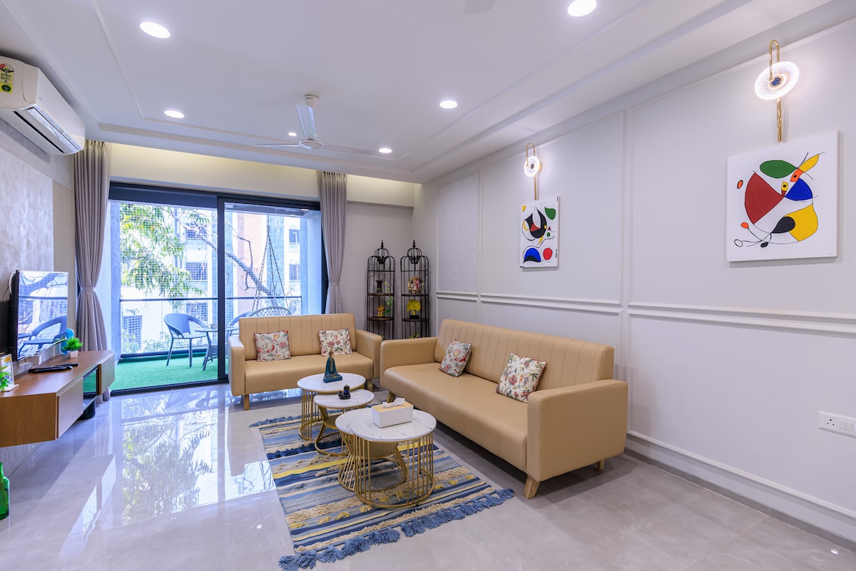 Experience global luxury with an Indian touch. This fully furnished 4BHK blends international comfort with Indian warmth. Designed for long or short stays, the space offers air-conditioned bedrooms with private bathrooms, a fully equipped kitchen, and a spacious private terrace. Whether you're an NRI visiting family, a professional working remotely, or a family looking for a peaceful retreat, this home offers comfort, privacy, and style in equal measure.