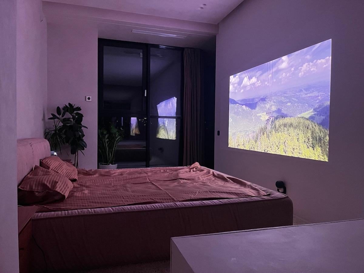 Кино-зона-микробетон-Ванна в спальне • Вид на парк