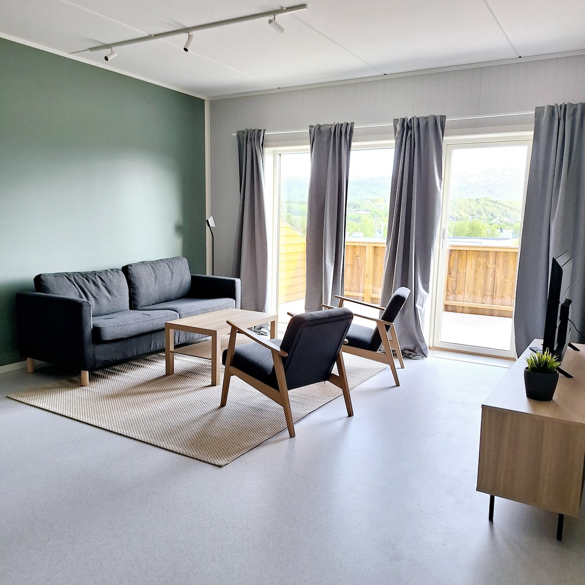 Studio apartment separate entrance. Windows facing a garden and the midnightsun/ sea / northern lights. Gardentable, garden chairs. Doublebed 150cm High speed wi-fi, cable tv. Kitchenette, two plates stove. Tea & Coffee and BREAKFAST included. Microwave, Fridge/freezer necessary equipment. Dinnertable for two. Bathroom with window. Washing machine + dryer. Located in central Narvik in a quiet part of town. 9min walk city center, railwaystation and flight bus. 3min walk to a small beach.