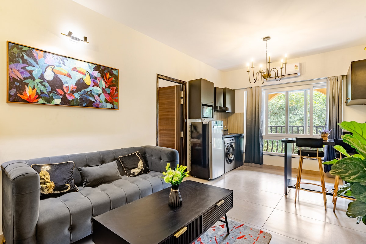 Welcome to White Feather Castle, a luxury 2BHK apartment, just minutes from Candolim Beach, North Goa. Enjoy stunning pool and river views from your private balcony. Perfect for families, couples and remote workers, with high-speed Wi-Fi, air conditioned home, fully equipped kitchen, daily cleaning, power backup, secure gated parking with swimming pool & Gym, kid friendly amenities. Steps from vibrant restaurants, nightlife, and famous beaches. Book your serene and stylish Goan getaway today!