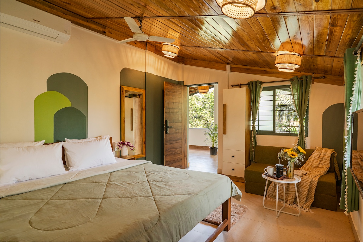 Welcome to our cozy retreat at Cordillera Hospitality! Just a short 5-minute drive from the beautiful Anjuna and Vagator beaches, our place is perfect for making amazing memories. Picture yourself waking up to a gentle morning breeze, then diving into all the fun nearby. Our three-bedroom getaway features spacious bathrooms and all the comforts of home. Whether you want to relax or explore, this is the perfect spot for you. Come join us and create unforgettable moments!