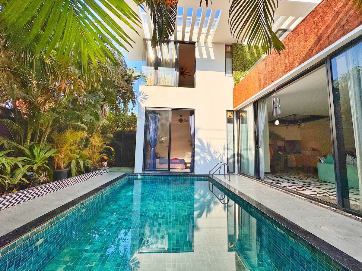 时尚2卧室私人泳池别墅|看管人|安朱纳海滩附近