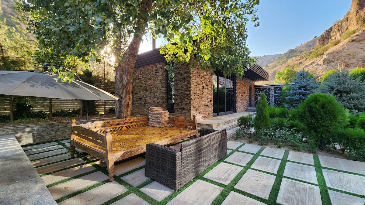 Современный дом со всеми удобствами далеко от городской суеты, свежий воздух, горы и вид на река Варзоб