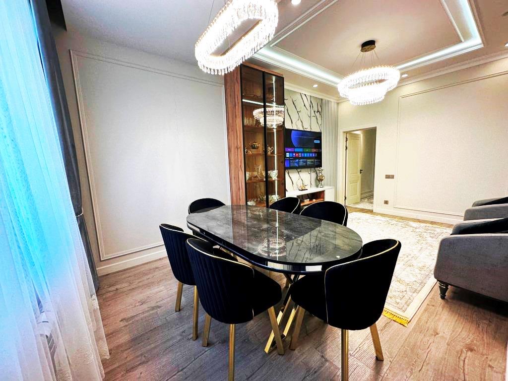 A spacious(91 sq.m.) 1 BDRM with a large guestroom centrally located in the brand new residential apartment complex in the city center. Easy access to main attractions of the city. Mazza (Мазза) Coffee shop with full menu on the ground floor. Walking distance to Mehrgon Market(1km), Sultanbey restaurant(1.2km), Rudaki park/Flag Pole/National Museum(1km), Opera Ballet Square(2.1km) and proximity to other central landmarks.