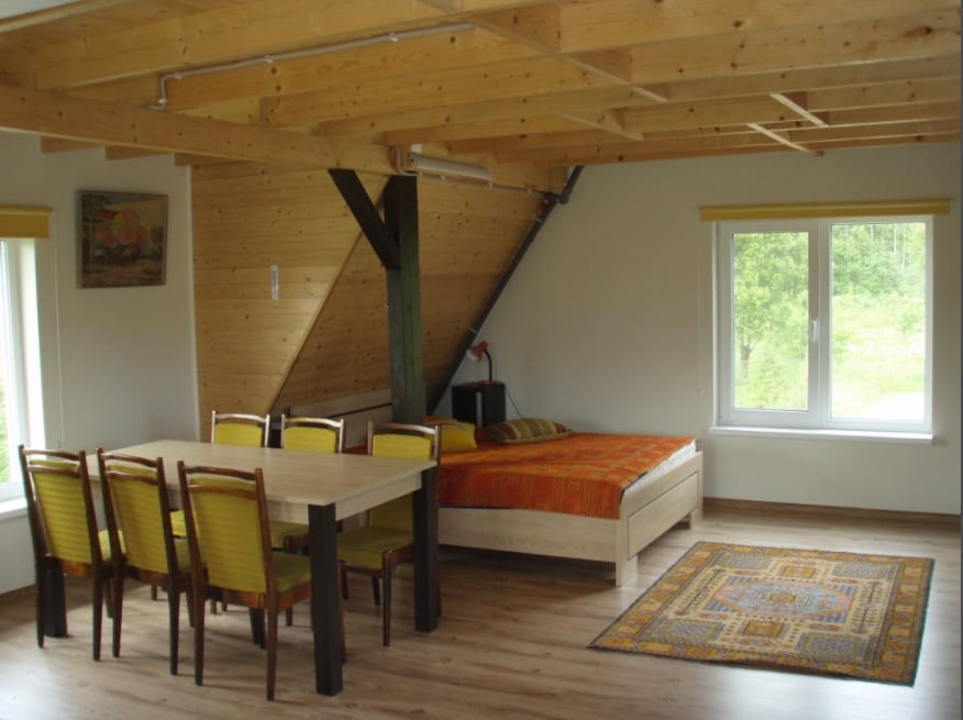 Nature surrounded guest house only 20km from Valmiera and 16km from Cēsis. Perfectly located directly next to river Gauja in amazing Latvian landscape in theritory of National Park. Guest house has 2 functional floors with Kitchen and WC and Shower in ground floor, bedroom in 1st floor and attic with matrace sleeping options. Perfectly fitting for a family or friends. The house has a grate surrounding for all kind of activities and lot's of unique nature monuments in close distance.