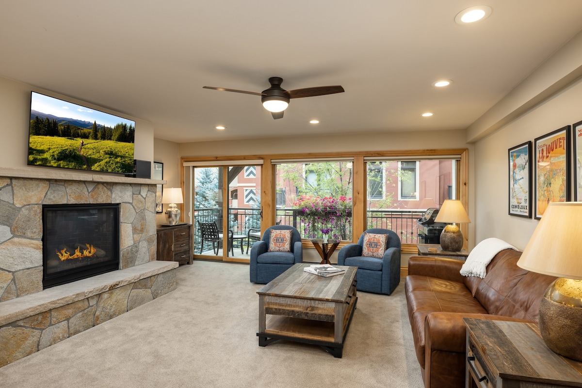 Incredible unobstructed views of Vail Mountain in this spacious, two bedroom condo with modern mountain style. Vaulted ceilings with picture windows let the famous Colorado sun pour in. A cozy fireplace and renovated kitchen make this a wonderful home base to explore the outdoor playground! Steps to the free Town of Vail bus for easy access to Vail Village - shopping, dining, and nightlife without ever needing your car! TOV STR License #025804
