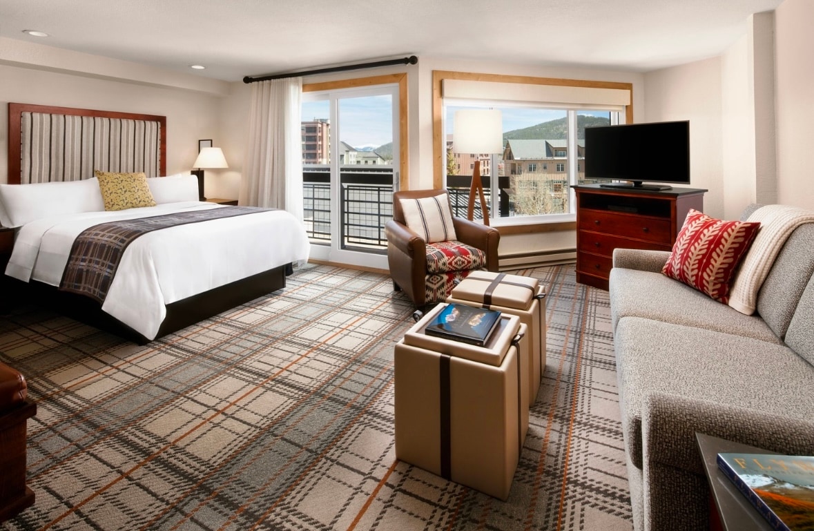 Everything you need for a Ski in / Ski out vacation. Book a luxury winter getaway. The Grand Lodge on Peak 7 is conveniently located at the base of Breckenridge Ski resort and also the BreckConnect Gondola. Make an easy transition between relaxing at the resort, hitting the slopes or exploring town. This is the perfect opportunity to secure your plans for the ski season in this romantic, memorable place. Luxury One Bedroom Suite with kitchenette.