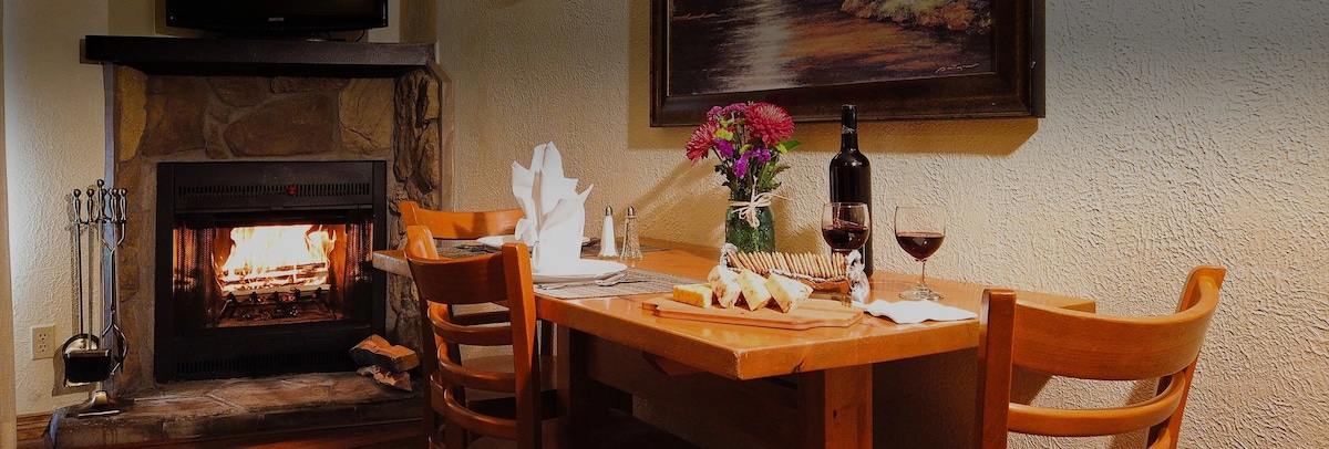 Grand Timber Lodge One Bedroom MASTER Condo with a fully-equipped gourmet kitchen, dining room, fireplace, & living room, pullout queen couch, separate master bedroom king sized bed, bath with jacuzzi tub. Will sleep 4 comfortably at a 5-Star Ski-in/Ski-out Resort. Shuttle service to town, shopping, restaurants and other mountain range lifts if you don't want to ski in/ski out. Resort is great for couples, solo adventurers, business travelers, and families (with kids).
