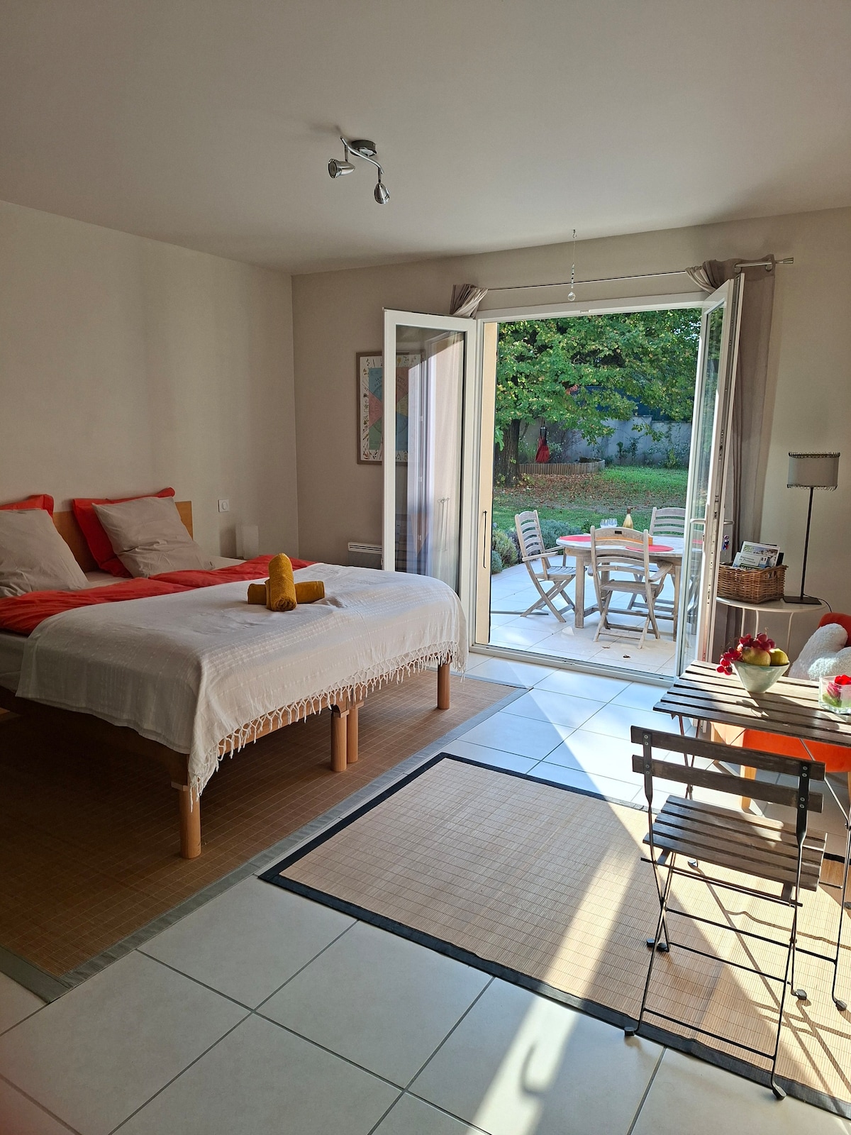 Venez découvrir et profiter de ce logement de charme paisible dans un cadre arboré et verdoyant ! Le petit plus : Vous êtes à 10 minutes à pied du centre ville de Vaison la Romaine. Le logement de 35 m2 est une extension de notre résidence principale, se compose d un grand jardin indépendant, d un balcon, d un salon cuisine de 20 m2, d une chambre de 11 m2. Entrée dans la propriété commune et entrée du logement privé. Le logement bénéficie d une cave partagée, idéal pour y déposer les vélos.