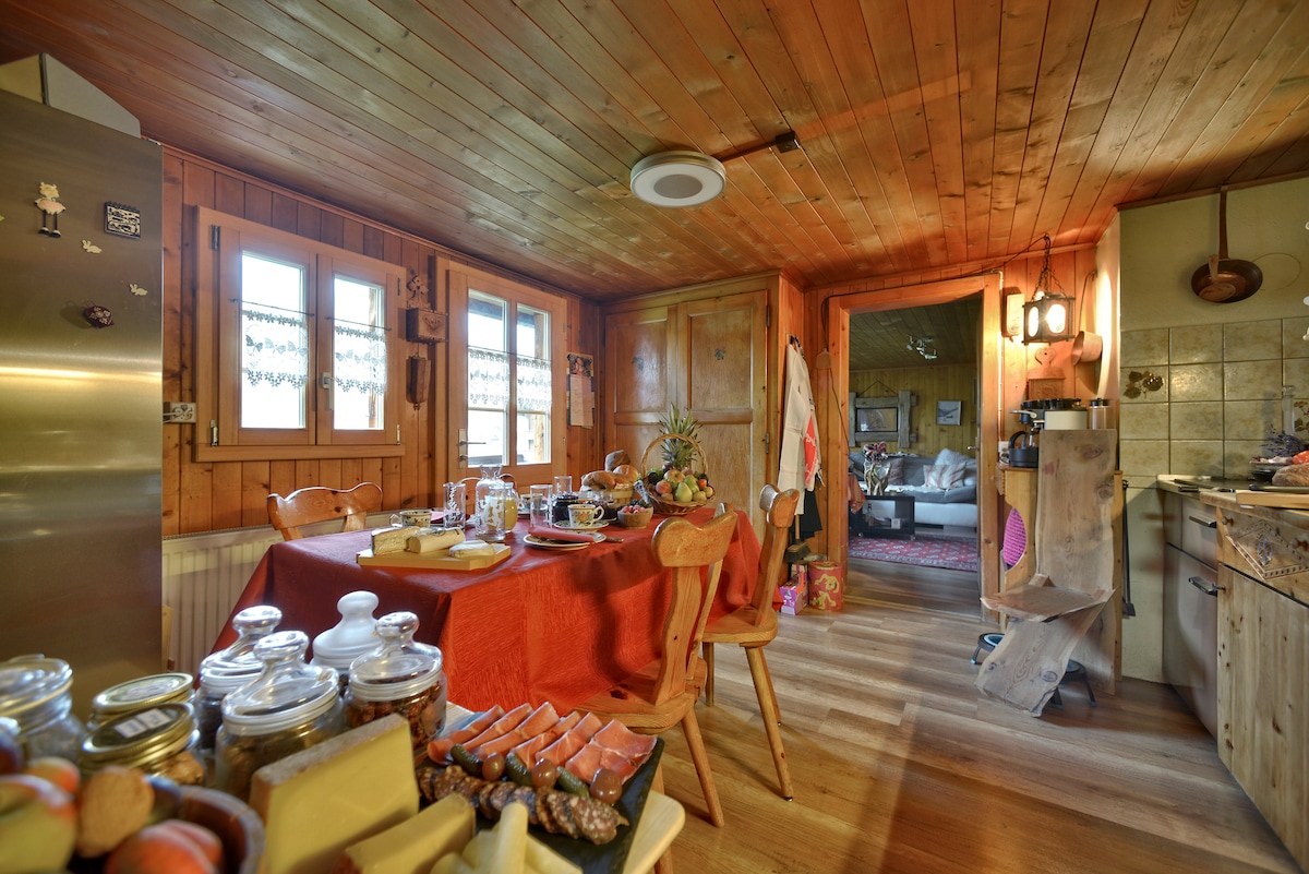 Petit-déjeuner inclus. Si nous devions être absents, les prix sont baissés automatiquement. L’Abri’cottage est l’alliance d’un raccard centenaire et d’un chalet neuf. Nous avons mis tout notre cœur dans sa conception et nous espérons que vous vous y sentirez bien. Il est situé à 1300 mètres d’altitude, en amont du col de la Forclaz, au cœur du petit et calme village deTrient sans restaurant ni commerce alimentaire. Dans notre jardin et en face de notre maison. PAS DE TMB.