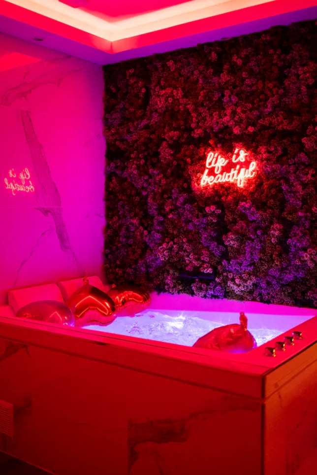 ❤️🔥 Discover the luxury Love Room VELVET & LEATHER at 20min from Paris, perfect for a romantic and sexy getaway ! 💎 Spa bath, private sauna, cloudy-effect king-size bed, stripping bar, tantra sofa, etc. 💋 Explore new sensations and create unforgettable memories together in the incredibly equipped secret BDSM playroom space 🎬 92" Cinema face to the bed with Netflix, Prime Vidéo, Disney+, Spotify 💫 Escape to a haven of peace and luxury for a unique and memorable experience !