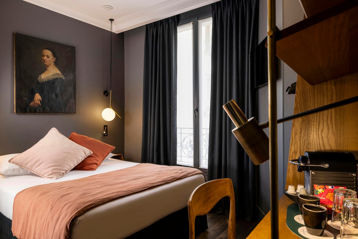 Step into the superior room where refined details and bright colors create a cozy and timeless retreat in the heart of the Marais district. Relax on a large double bed with a quilted mattress and enjoy the comfort of a desk or table and a sofa or chair. Thoughtful touches like connecting rooms or a baby cot can be arranged on request making your stay both enjoyable and flexible.
