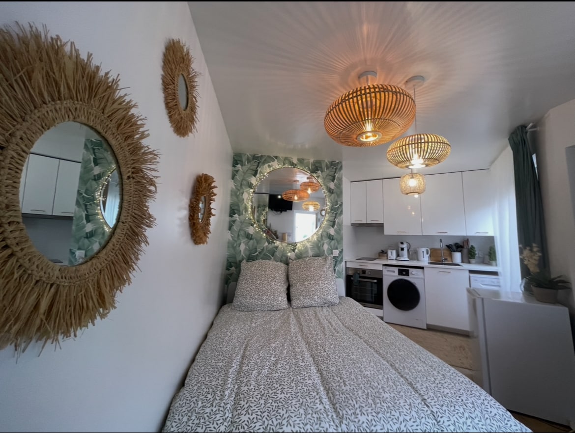 Ce studio, rénové en février 2023, est une dépendance de pavillon et dispose donc d'un accès autonome et différencié du logement principal. Disposant d'un grand nombre d'équipements domestiques (wifi sur une ligne internet en fibre optique, télé connectée, cuisine complète avec machine à café, machine à laver), ce logement conviendra parfaitement à une clientèle professionnelle ou pour un jeune couple visitant Disneyland.