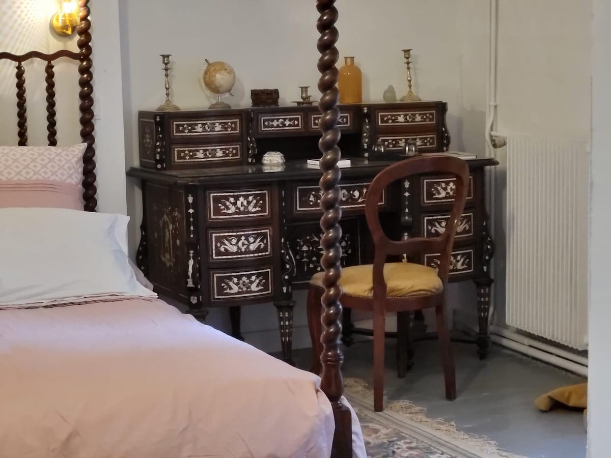 Avec mon mari nous avons voulu que cette chambre soit «cocooning» nous l’avons aménagée et décorée pour que vous vous y sentiez bien! Elle ne communique pas avec le reste de la maison, la porte est condamnée et doublement isolée ! La porte d’entrée de votre chambre est indépendante et possède sa clef. La chambre se situe à l’arrière de la maison 🏡 , et donne sur le jardin 🌱: Petite table de jardin sur terrasse et chilienne quand le soleil pointe le bout de son nez + chat(s) si affinités…