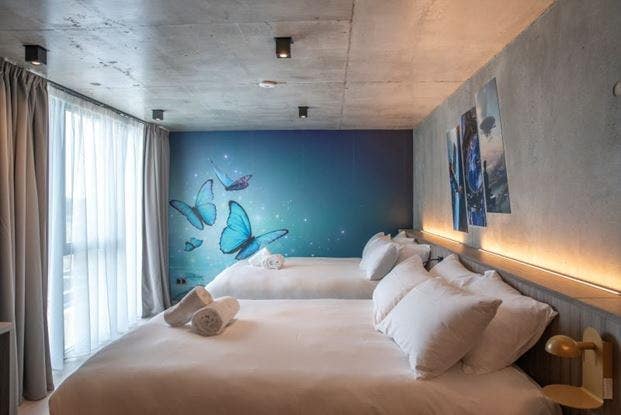 In our Quadruple Premium room category, with a capacity of 1 to 4 people and a 24m² surface, you will enjoy comfortable bedding with two large double beds, complete with hypoallergenic duvet and pillows. This room category has a large bathroom with tub, and the rooms are located on the third floor of our hotel.