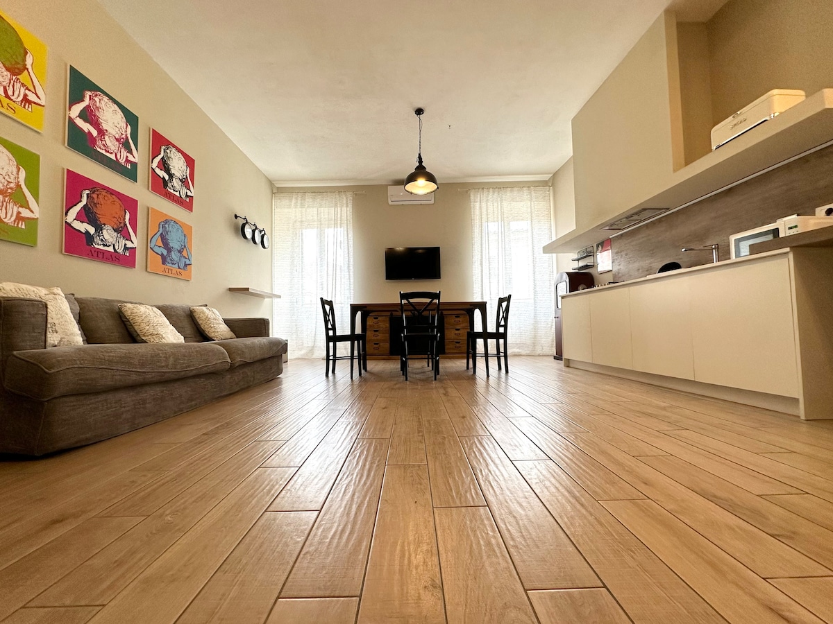 Nel cuore del centro storico di Pistoia, appena fuori dalla Ztl, a 100 m dalla magnifica Piazza del Duomo, in un antico palazzo signorile, appartamento di 60 mq dotato di tutti i comfort. Un ampio salone con divano letto matrimoniale, zona cucina e pranzo, una camera matrimoniale con cabina armadio, ampio bagno con doccia. Parcheggio custodito a pagamento a 50 m.