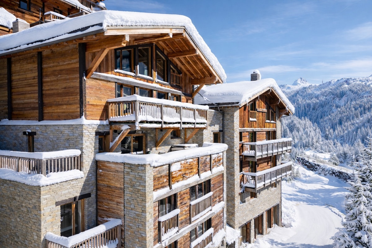 Avec un mélange réussi de minéral et de vieux bois, cet appartement réinterprète avec style le design du chalet savoyard. Véritable hymne à l’art de vivre, tout est pensé pour profiter des bienfaits d'un séjour à la montagne. Les points forts: appartement prestige tout équipé, vue imprenable sur le Mont-Blanc, accès piste ski aux pieds, espace bien-être avec piscine extérieure, jacuzzi et sauna, salle de fitness, nombreuses activités gratuites dans le Village Five Peaks Collection