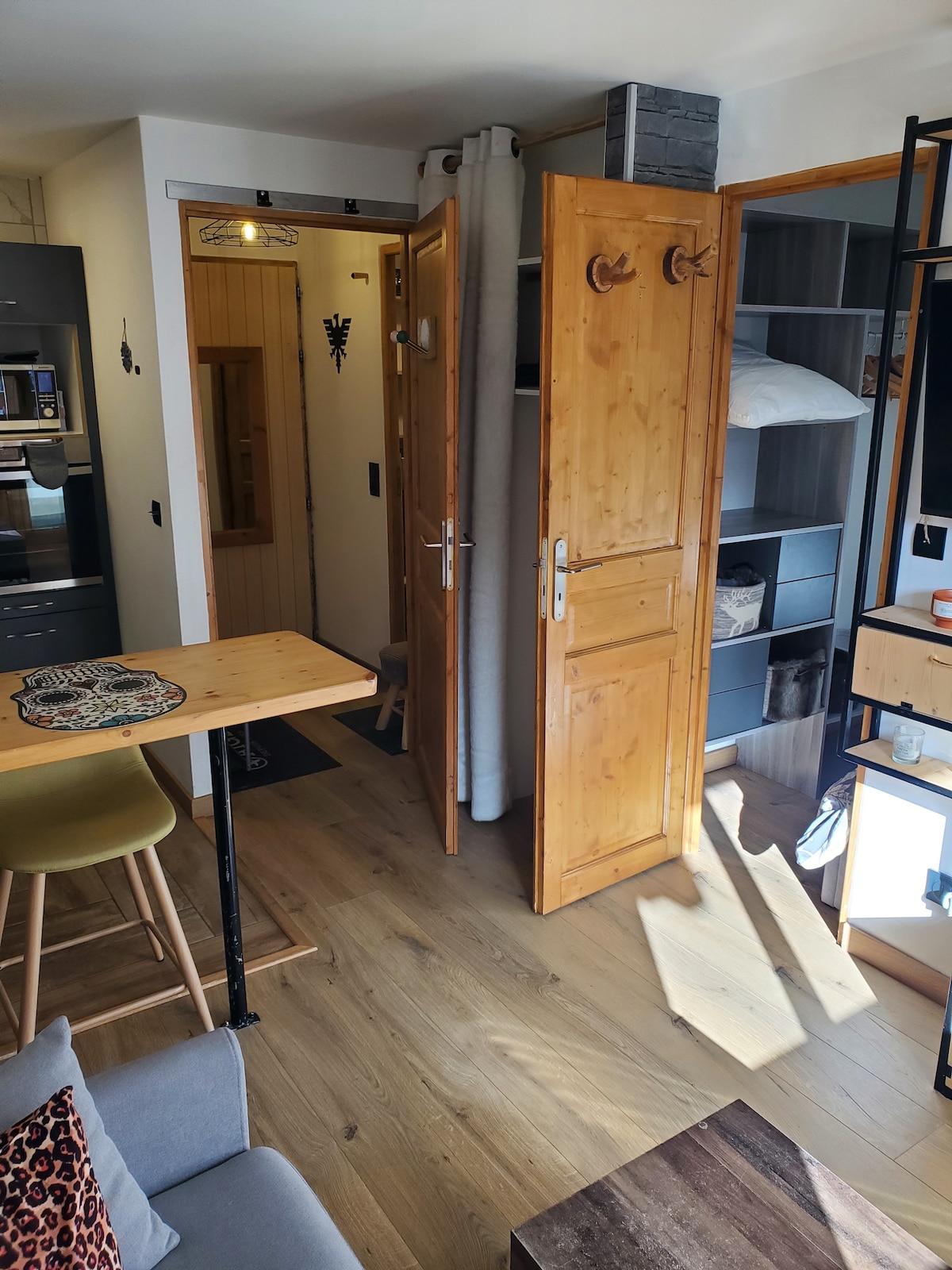 Comfortable, well-located apartment just 200m from the lifts & ski school meeting points. An ideal option for a simple & relaxed stay. The space is small but comfortable for up to 3 guests (2 adults, 1 child), 4 if there are small children. A comfortable sofa bed is located in the lounge area & the entrance hallway has a set of bunkbeds. There is a door between the two making it possible to separate the sleeping areas. An ideal space for a couple or small family *appartement NON équipé PMR